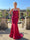 Mermaid Red Velvet with Gold Beaded Prom Dresses with Slit ARD3181