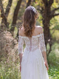 Off the Shoulder White Wedding Dresses with Sleeves See Through Beach Wedding Dress AWD1208 Off the Shoulder White Wedding Dresses with Sleeves See Through Beach Wedding Dress AWD1208