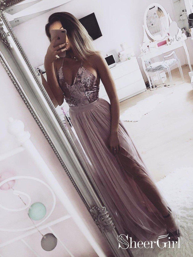 Špagetový pásek s výstřihem do V Stříbrné plesové šaty s rozparkem Levné sexy společenské šaty ARD1738 Špagetový pásek s výstřihem do V Stříbrné plesové šaty s rozparkem Levné sexy společenské šaty ARD1738