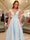 Vestidos de fiesta largos de tul azul polvoriento sin tirantes APD3260