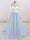 Vestido de novia con falda inferior azul cielo y parte superior de marfil con tirantes finos y flores AWD1696