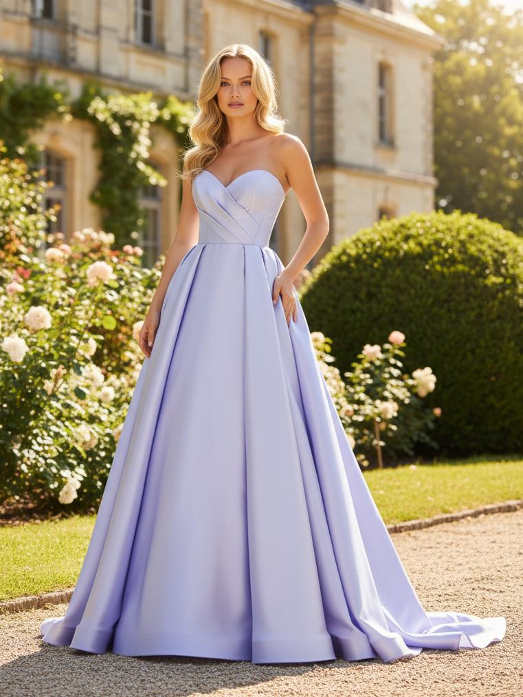 Charming strapless ball gown featuring a sweetheart neckline and convenient side pockets. The long, flowing skirt creates a graceful silhouette, while the fitted bodice flatters your shape—perfect for prom, gala, or any elegant evening occasion.