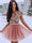 Pink Deep V-neck Homecoming Dress Rhinestone Short Prom Dress ARD2424