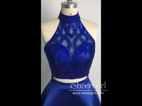 Royal Blue Two Piece Homecoming Dress Open Back Beaded Short Prom Dress ARD1712 Royal Blue Two Piece Homecoming Dress Open Back Beaded Short Prom Dress ARD1712