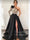 Lace Top Single Sleeve Prom Dresses Black Long Formal Dress with Hight Slit ARD2956
